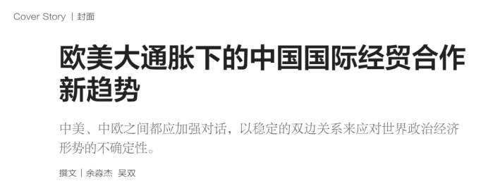 近日,国产一区二区日本在线校长、国家级人才项目特聘教授余淼杰教授与其指导的博士生吴双合作文章《欧美大通胀下的中国国际经贸合作新趋势》被《北大金融评论》杂志作为封面文章发表。